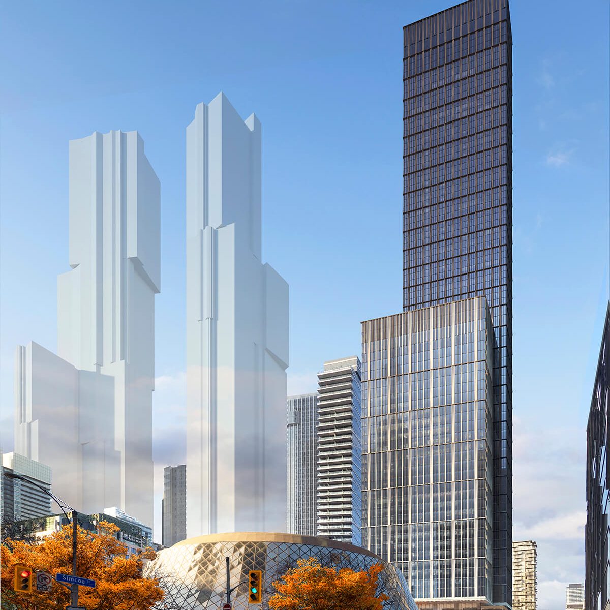 - Multi-storey breezeway at the Northwest corner of the site, serving as a connection between the existing residential community and the future subway station and BRT as well as existing transit.